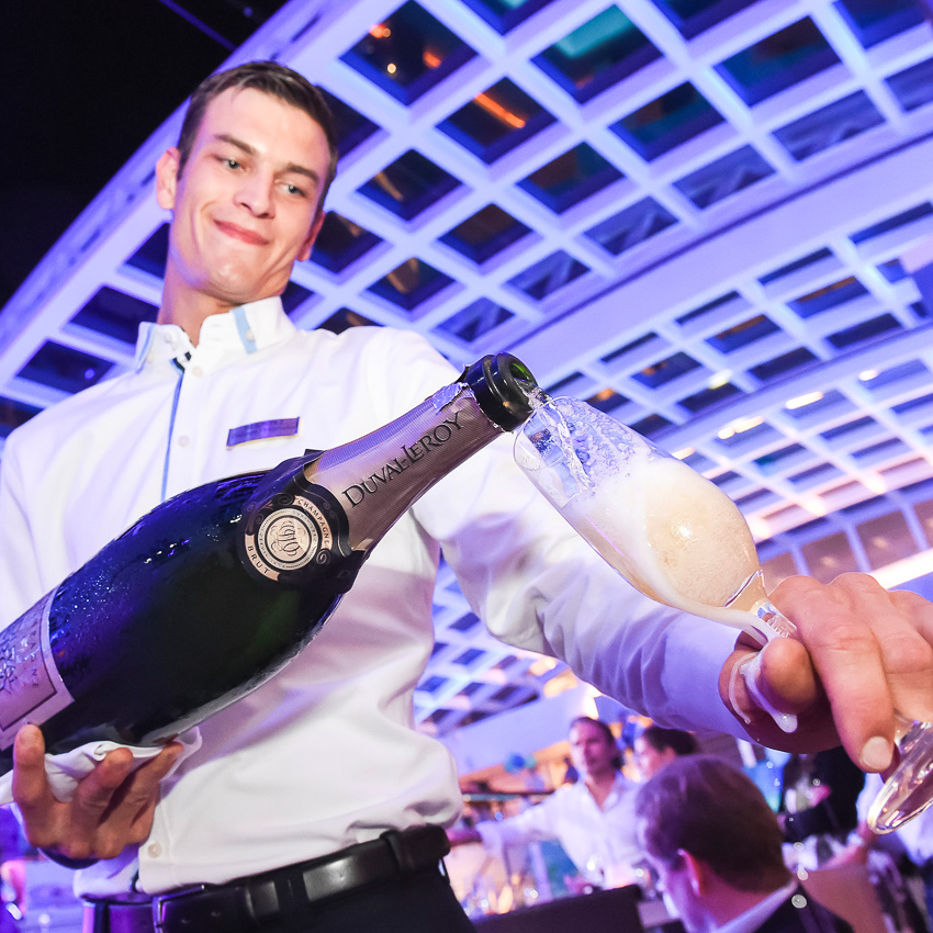 Allerlei Zahlen hatte auch das Fest an Bord zu bieten, es stand unter dem Motto: „eine kulinarische Reise um die Welt“. Kreuzfahrtdirektor Christian Bertram: „Unsere Gäste waren tief beeindruckt und haben die liebevoll vorbereitete und nach Ländern dekorierte Tafel genossen.“ 100 Meter lang war die Gourmetmeile, die auf der Backbord- und Steuerbord Seite von Deck 9 aufgebaut worden war. Das gesamte Abendessen fand draußen statt, dafür wurden alle beweglichen Tische und Stühle aus den Restaurants von Deck 4 nach oben gebracht. Der gesamte Poolbereich war mit hunderten Luftballons geschmückt, an den Bars wurden köstliche Drinks serviert.