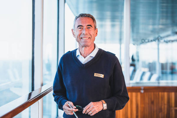 Mit seiner langjährigen Erfahrung bewahrt Matthias Mayer an Bord immer die Ruhe – und hält als General Expedition Manager den Kontakt zu den Gästen