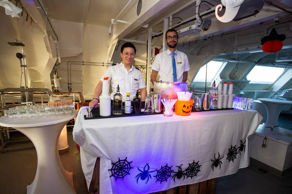 Die Reise durch das Große Blau wurde nur kurz unterbrochen von einer Stippvisite bei den Sankt-Peter-und-Sankt-Pauls-Felsen, einem winzigen Eiland von etwa 250 Metern Durchmesser. Vor allem Seevögel leben hier und vier Wissenschaftler in einer Forschungsstation. Wir passierten die Inseln im frühen Morgenlicht. Es war ein besonderer Moment. Doch vieles, was auf so einer Transatlantikreise passiert, kann man nicht in Worte fassen. Man erlebt die Schönheit der See. Und es war einer der Höhepunkte dieser Passage als der Kapitän mitten in der Weite des Atlantiks das Schiff stoppte – und alle an Bord einlud auf ein Bad im Atlantik.