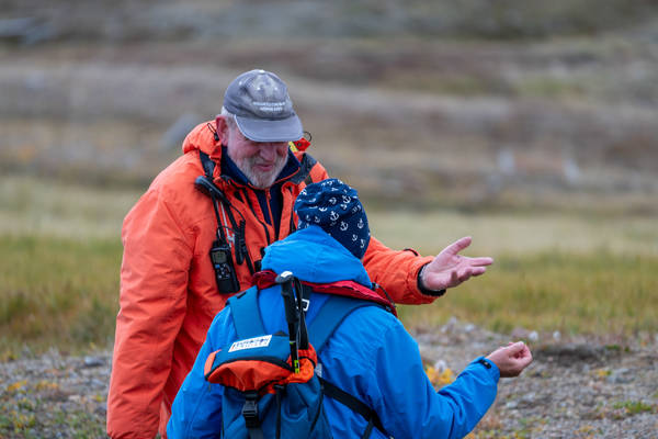 Der erste Seetag ist den Vorbereitungen gewidmet. Jeder Gast erhält Gummistiefel und eine warme Jacke für die Dauer der Reise. Wir lernen, wie wir in die Zodiacs einsteigen. Und wir bekommen schon erste Informationen über das Reisegebiet. Die Anlandungen werden von den kompetenten Expertinnen und Experten stets ausführlich vor- und nachbereitet. Mir gefällt, dass diese Mitarbeiter auch außerhalb ihrer Vorträge häufig in den öffentlichen Bereichen anzutreffen sind. So ergeben sich immer Möglichkeiten, mit ihnen ins Gespräch zu kommen.