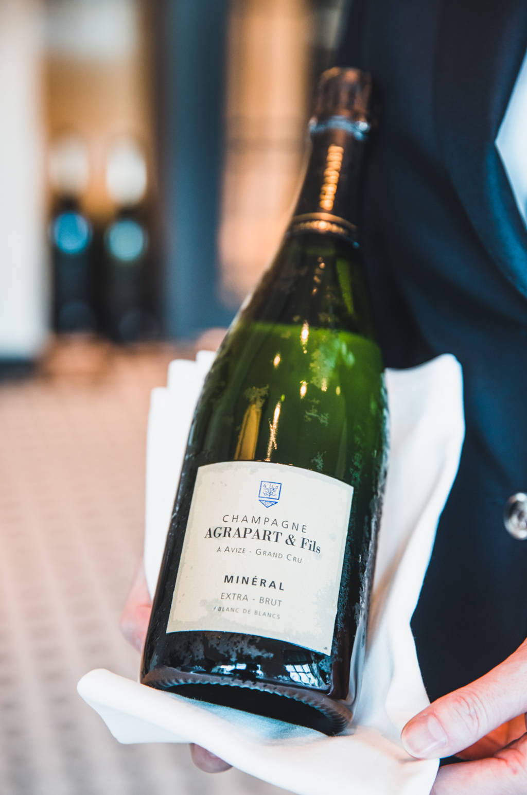 An Bord der Schiffe von Hapag-Lloyd Cruises arbeitet Jana Töpfer seit 2015. Zuerst vor allem auf der EUROPA, inzwischen auch auf der EUROPA 2. „Wir haben manche Rarität in den Lagern auf Deck 2“, sagt sie. Zudem herrsche an Bord eine besondere Neugier für exklusive Weine und Champagner. Sie liebt diese Stimmung, die exquisiten Wein-Tastings, bei denen einige Flaschen der besten Güter weltweit vorgestellt werden. Oder die Champagner-Tastings, wenn sie etwa einige Schätze präsentiert, die sonst kaum verfügbar sind. Und weil der Ruinart Rosé der unumstrittene Lieblings-Champagner an Bord ist, hat sie ihn aus ihrer Empfehlung ausgelassen. „Nicht ganz zurecht“, sagt die Sommeliere, „denn es ist ein toller Champagner. Aber heute wollen wir auch einige Entdeckungen machen.“