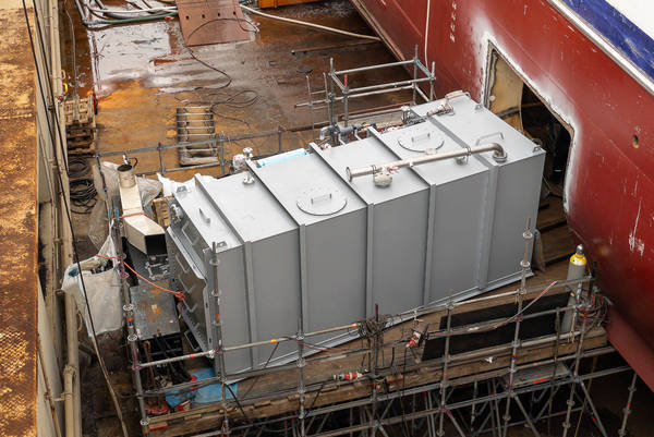 Schließlich bleibt Voss einem großen Loch im Schiff stehen. „Nur für die Werft werden auch so genannte Montageöffnungen eingebaut.“ Damit kann neues, sperriges Equipment wesentlich schneller und unproblematischer ins Schiff gebracht werden, etwa die Abwasseraufbereitungsanlage. Nachdem die Öffnung wieder geschlossen wurde, erfolgt selbstverständlich eine sehr genaue Dichtigkeitsprüfung.