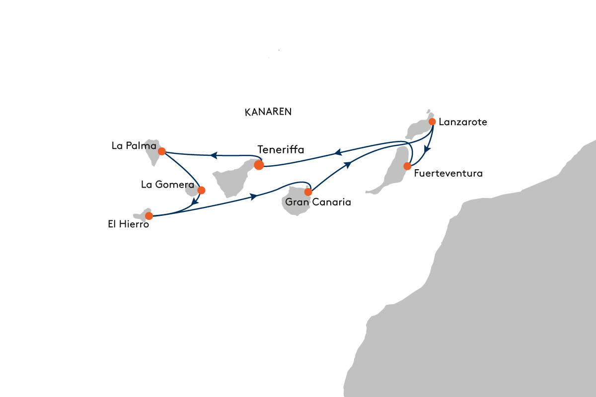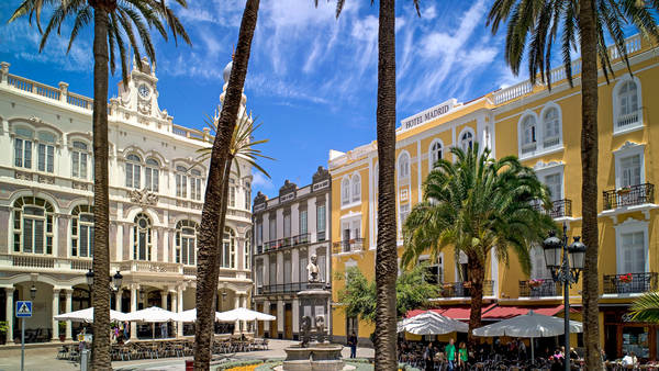 Nur ein paar Schritte sind es vom Anleger Puerto de Nuestra Señora de la Luz bis ins Zentrum: Las Palmas begeistert mit frischen Papayas, der grandiosen Plaza Cairasco und dem „besten Klima der Welt“ (laut Studie einer amerikanischen Universität). Das Leben spielt sich zu jeder Jahreszeit draußen ab. Ob Kolumbus hier 1492 wirklich übernachtet hat, als seine drei Karavellen im Hafen lagen, kann nur gemutmaßt werden. Heute würde der Entdecker sicher länger bleiben. Die zehn besten Tipps für die kanarische Metropole