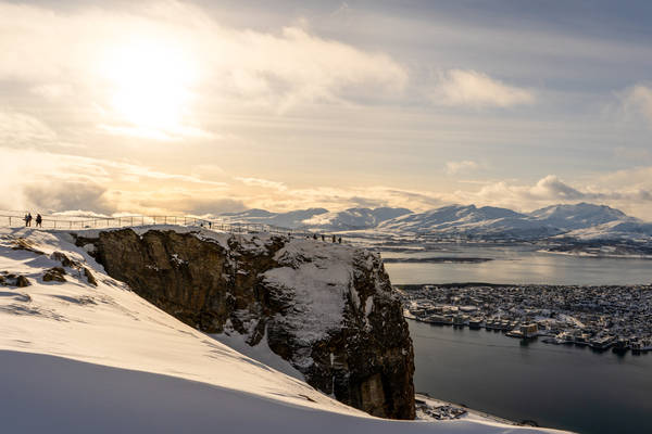 10. Die Stadt liegt zum größten Teil auf einer Insel, mit dem Festland ist sie durch eine sich kühn über den Hafen erhebende Brücke verbunden. Unweit der Eismeerkathedrale liegt die Talstation der Seilbahn Fjellheisen, von hier schweben Gondeln auf den Stadtberg Storsteinen. Der misst zwar nur eine Höhe von rund 400 Metern, doch der Gipfel bietet einen großartigen Blick auf das „Paris des Nordens“. Im Sommer fährt die Seilbahn bis ein Uhr nachts.+++