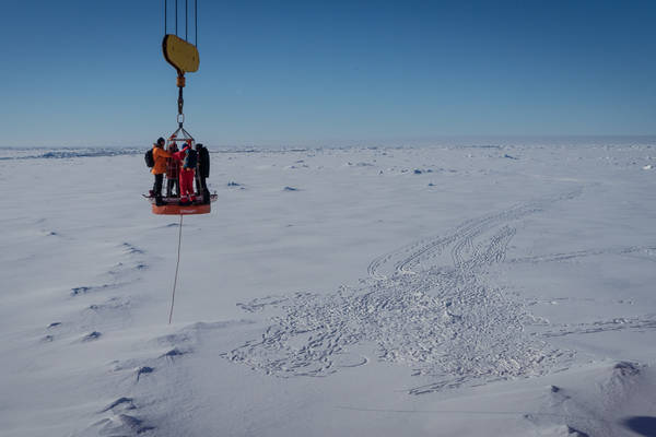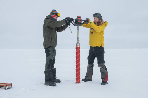 Wir waren vor allem für die Navigationsunterstützung angefragt worden. Zudem wäre es bei einer anderen Eislage es unsere Aufgabe gewesen, vorauszufliegen und Eiscamps zu errichten. Geleitet wurde unser Team von Lasse Rabenstein. Er ist ein ehemaliger Mitarbeiter des AWI, der Drift+Noise gegründet hat, ein Start-Up, spezialisiert auf die Navigation in polaren Bedingungen. Wir hatten zusätzlich ein wissenschaftliches Programm aufgebaut, das es mir ermöglichte, an 17 Stationen auf Eisschollen Probebohrungen vorzunehmen, zu vermessen, auf ihre Schnee und Eiseigenschaften zu analysieren. Ich habe pro Eisscholle ein bis drei Eiskerne entnommen, die wir vor Ort zerschnitten haben. Nach ersten Analysen an Bord, werden diese in wissenschaftlichen Instituten weiter untersucht.