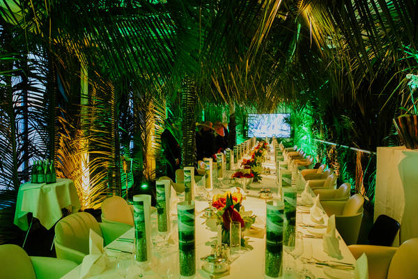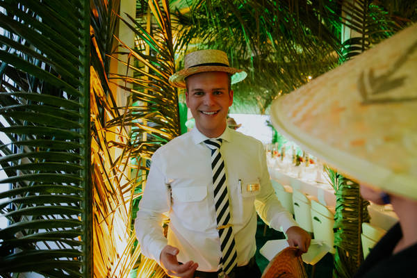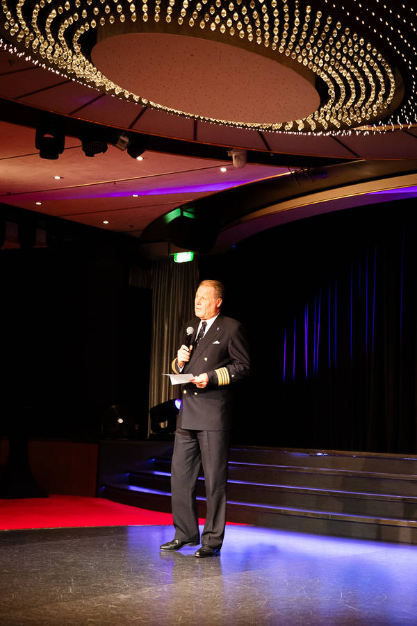 Insgesamt sollen es 213 „Etappen-Gäste“ gewesen sein, die mehrere Reise-Abschnitte gebucht haben. Da diese ihre Etappen aber ganz individuell wählen, reist man nur für eine gewisse Zeit gemeinsam. Es wechseln aber nicht nur die Gäste, sondern auch viele Crew-Mitglieder und der Kapitän. Beim Abschiedsessen von Dag Kapitän Dvergastein während unserer ersten Etappe haben sich 40 Langzeitgäste zu einem fantastischen „Dschungeldinner“ eingefunden – dafür wurde das Studio auf Deck 4 mit Palmblättern dekoriert. Es war ein toller Abend!