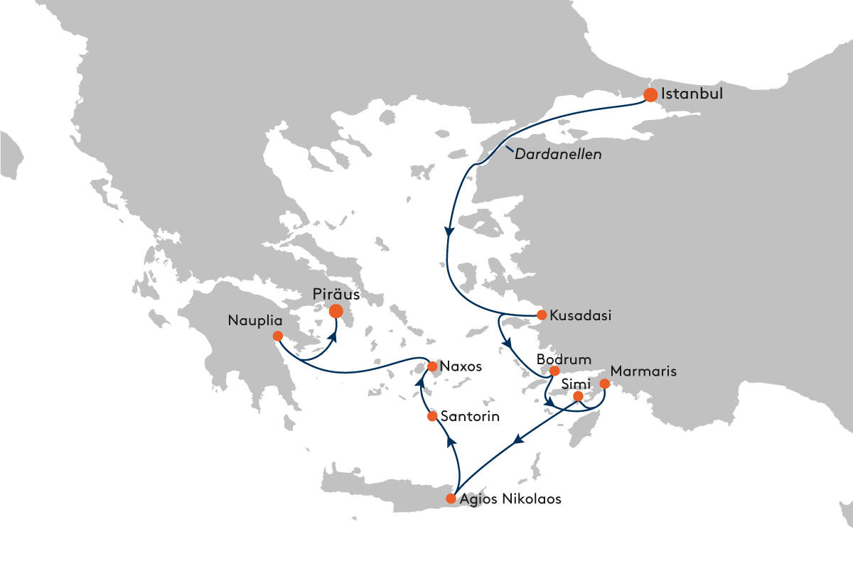 Constanze Paula Hoffmann: Selbst für Vielfahrer wie uns gibt es noch Flecken auf der Welt, die wir bisher nicht bereist haben. So waren wir noch nie in Vietnam, den Suezkanal kannten wir noch nicht, selbst Griechenland, die Türkei und einige kleinere Ziele im Mittelmeer waren für uns Neuland. Als wir dann im Katalog diese Route der EUROPA sahen, während der das Schiff einen großen Teil unserer weißen Flecken ansteuerte, haben wir uns mehr oder minder spontan dazu entschieden, an Bord zu gehen.
