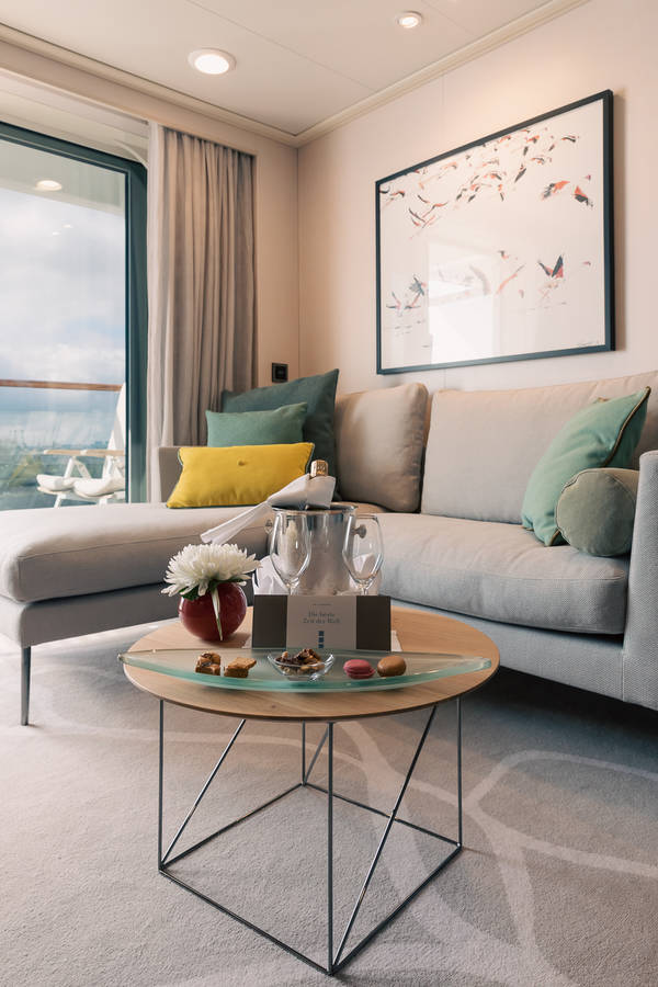„Alles!“ So lautet die Antwort von Gabi Haupt, Leiterin Produktmanagement MS EUROPA, auf die Frage, was ihre Gäste an den neu gestalteten Suiten besonders lieben werden. Und sie beginnt aufzuzählen: „das luftig, leichte Raumgefühl, die neuen, frischen Farben, die Möbel. Ich liebe die Récamiere von Cor und den Sessel von Rolf Benz.“ Und es gibt kaum jemanden unter den Anwesenden, der in diesem Moment nicht angetan ist von der Leidenschaft, mit der Gabi Haupt über „ihr“ Schiff spricht. Wie viel Zeit steckt in so einem Modernisierungsprozess? „Vor etwa anderthalb Jahren haben wir angefangen. Man sammelt Ideen, tauscht sich aus. Es folgen die ersten Brainstormings mit unseren Architekten, Scribbles entstehen – und schließlich der erste Entwurf für eine Suite.“