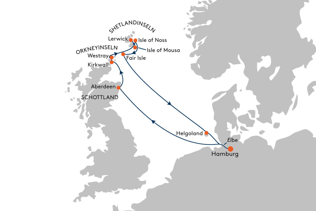 Wenn das Schiff die Leinen löst, ertönt der Gesang des Shantychors „Inseldeerns“. Dann wird die HANSEATIC spirit elbabwärts gleiten, vorbei an der Hafencity, einem der größten innerstädtischen Bauprojekte Europas, an der Elbphilharmonie, an der Skyline Hamburgs mit Michel, Fischauktionshalle und Blankenese. Am nächsten Tag macht das Schiff vor Helgoland fest.