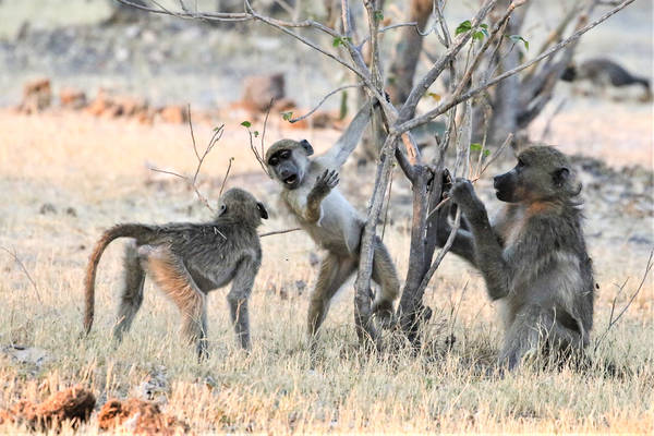 Jao tut sich durch die Löwenjagd auf einen Büffel hervor. Eine Leopardin schleppt ein erlegtes Impala in den Schatten des Baumes, auf deren schwere Äste sie sich später mitsamt der Beute zurückziehen wird. Doch nichts gleicht dem Menschen mehr, als die in großen Familiensippen lebenden Paviane, als Sonnensymbole im alten Ägypten verehrt. Ihre Kinder toben im Staub den Abends, während sich die Damen gegenseitig pflegen und lausen.