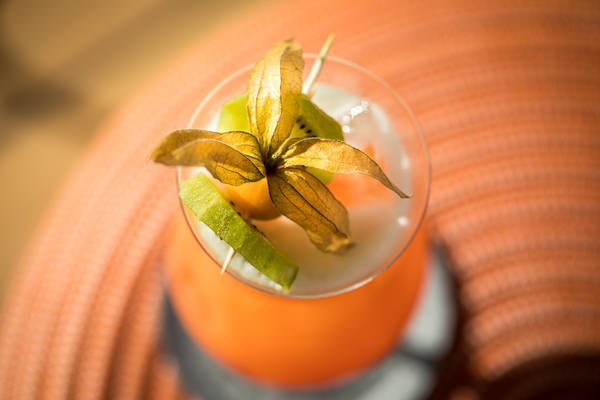 Der Pussy Foot ist ein Drink, für den es viele Rezepte gibt. An Bord der HANSEATIC nature bereitet ihn die Barfrau der Observation Lounge so zu: Erst gibt sie Eis in einen Cocktailshaker, dann – zu gleichen Teilen – Grapefruit- und Orangensaft hinzu, ergänzt um einen Schuss Zitronensaft. Die Zutaten werden schaumig aufgeschlagen und in ein hohes Glas gegossen. Die Grenadine lässt den Drink für einen Moment aussehen wie eine der coolen Lavalampen aus den 1970er Jahren. Dann rührt die Barkeeperin um, setzt etwas Garnitur auf den Cocktail und serviert.