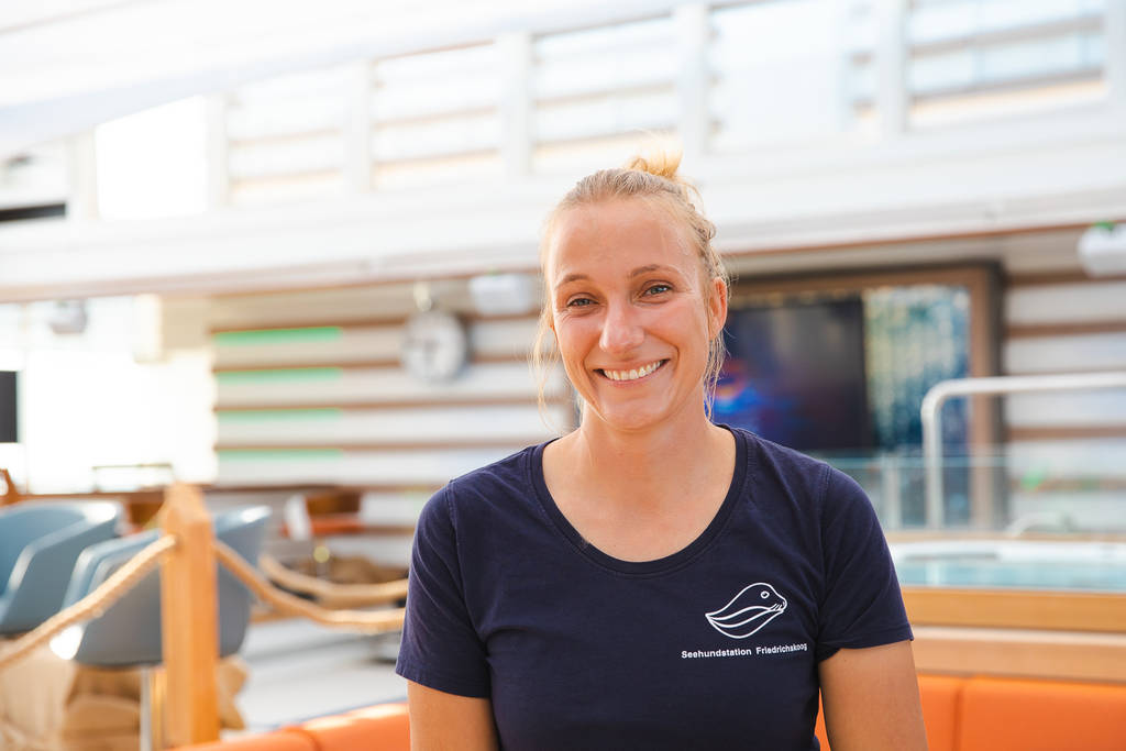Erstmals taufen wir ein Schiff im Rahmen einer Reise, erstmals feiern wir eine Hochseetaufe vor Helgoland, und erstmals ist die Taufpatin nicht – der Tradition folgend – eine Frau, sondern ein Weibchen: die Kegelrobbe Nemi. An Bord wird die symbolische Taufpatin vertreten von Tierärztin Ulrike Meinfelder. Im Interview spricht sie über Nemi und das Leben in einer Seehundstation