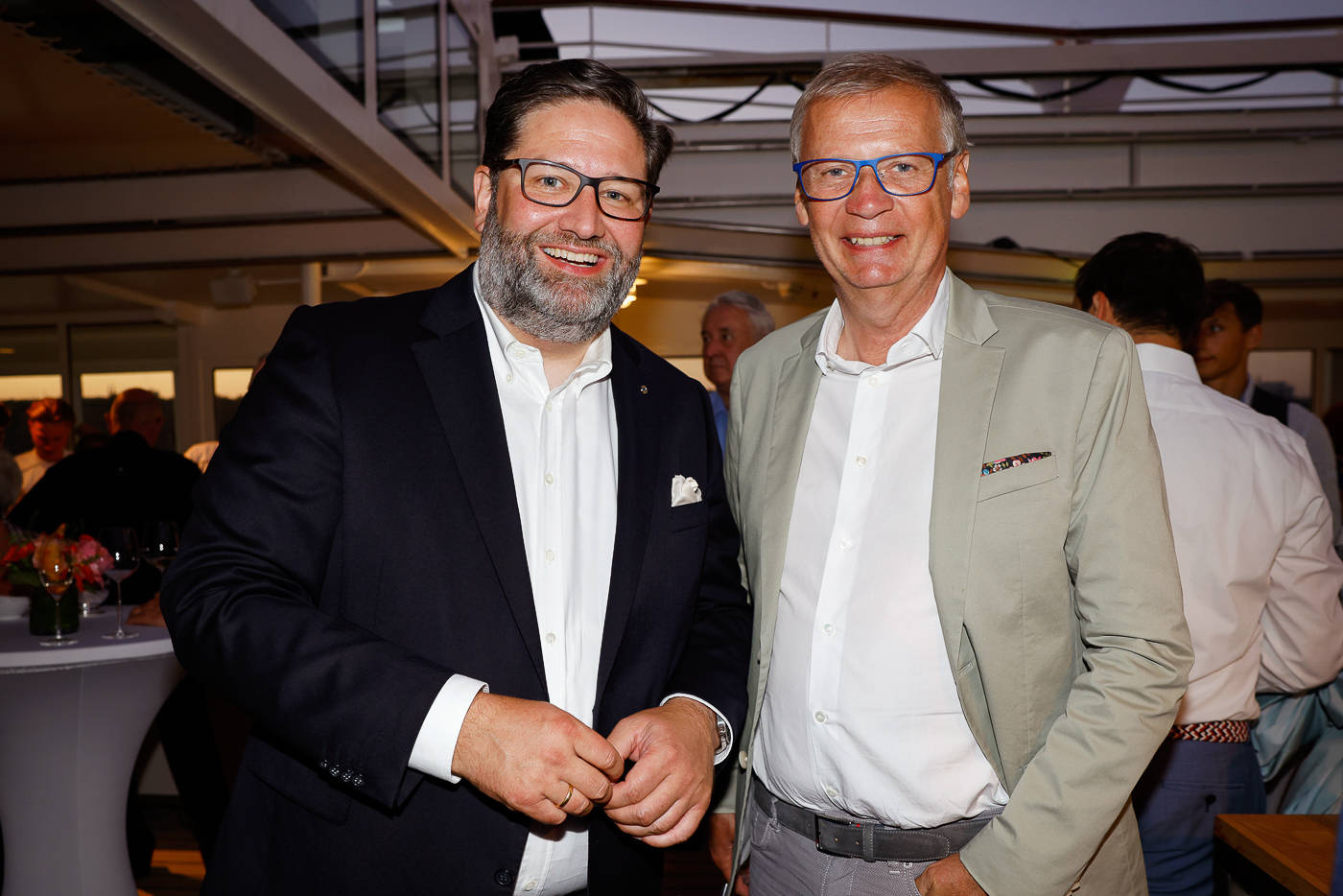 Die Moderation für das Event übernimmt Cornelia Poletto, selbst Spitzenköchin und Gastgeberin der TV-Sendung „Küchenschlacht“. Sie bittet alle Teilnehmer auf die Bühne des Pooldecks, selbstverständlich auch die Gastgeber: Gabi Haupt, Leiterin Produktmanagement MS EUROPA, Kapitän Jörg-Peter Berendsen und Julian Pfitzner, CEO von Hapag-Lloyd Cruises. „Endlich wieder EUROPAs Beste“, sagt Julian Pfitzner. „Es ist angerichtet, die Crew freut sich. Das wird ein toller Abend!“