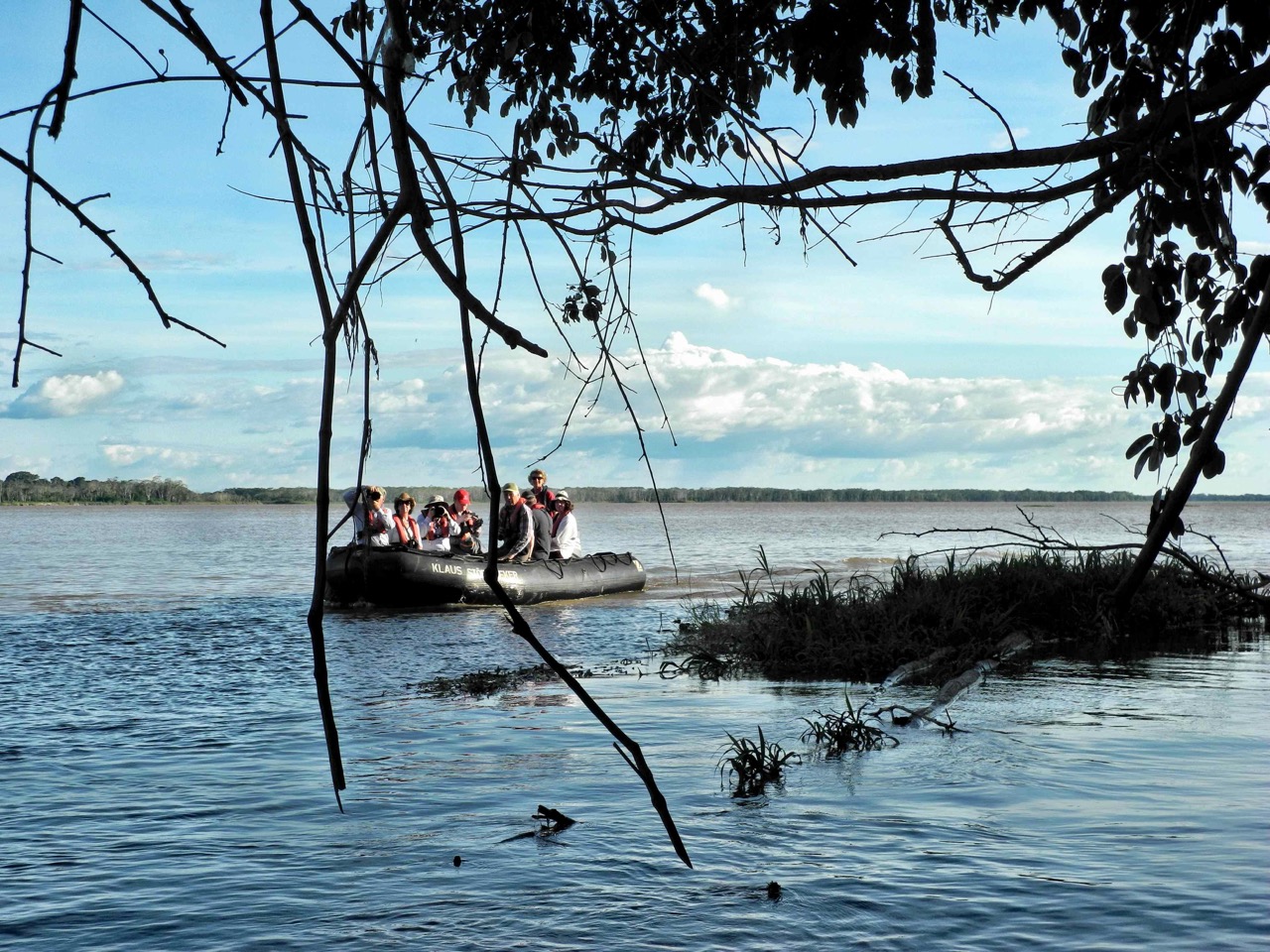 Expedition Amazonas. Überaus gefräßig, aggressiv und blutrünstig sollen sie sein, die Piranhas. So lautet zumindest die weitverbreitete Legende über die Amazonasfische. Aber eigentlich hätten wir es besser wissen müssen. Das Mündungsgebiet von Rio Badajós ist bekannt für sein Schwarzwasser und seine ausgedehnte Ufervegetation. Doch an unserem Ankerplatz verdrängt die stark sedimenthaltige und braune Strömung des Amazonas das dunklere Gewässer. Für unseren Guide und Angelexperten Mo heißt das, sich in Geduld zu üben, wenn man hier Piranhas angeln will. Sechs Gäste halten am späten Nachmittag ihre mit blutigen Rindfleischbröckchen bestückten Angelschnüre vom Zodiac ins Wasser, und es passiert erstmal – nichts.