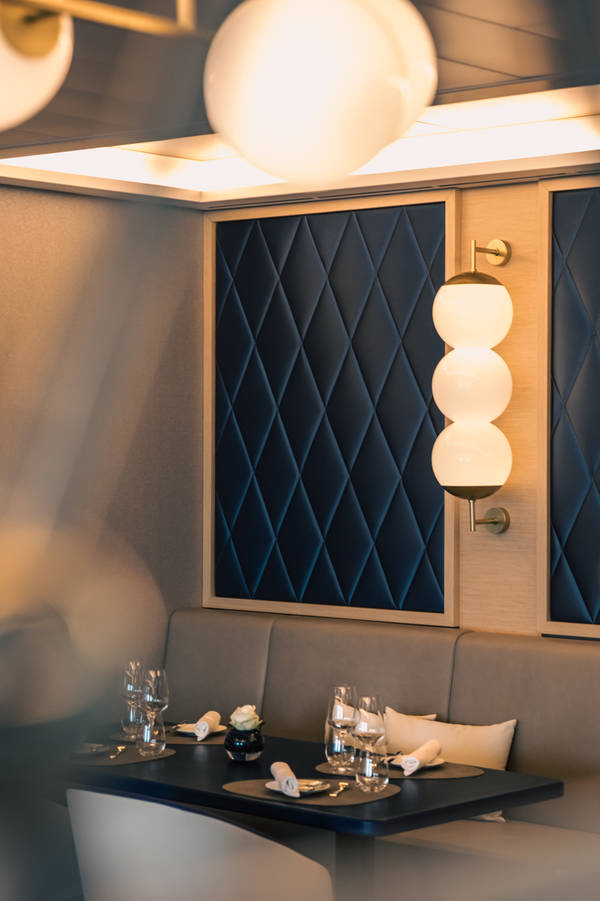 Corporate Executive Chef Michael Hoffmann erklärt, dass es ihm darum ging, die Rezepte dieser typischen Klassiker modern zu interpretieren. Dafür hat er, wie es seine Art ist, diverse Recherchen angestellt, Zutaten und Zubereitungen erkundet. Er hat einige Reisen unternommen und viele Restaurants besucht – und so schließlich eine stimmige „l'esprit"-Stilistik entwickelt. Gern beginnt der Abend in dem charmanten Bistro-Restaurant an Bord mit einem Glas Rosé-Champagner. Dann wird frisches Brot serviert. Es sind die krossesten Mini-Baguettes auf See und samtige Brioches, die mit cremiger Butter auf schwarzen Schiefertäfelchen eher kleinen Kunstwerken gleichen. Fast zu schön, um gegessen zu werden. Wären sie nicht so köstlich.