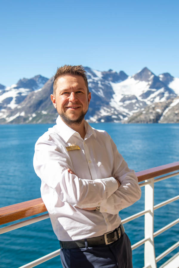 Mario Aigner, Biologe im Expeditionsteam. 1985 im österreichischen Vöcklabruck geboren, aufgewachsen im Salzkammergut. Nach einer Ausbildung zum chemischen Verfahrenstechniker und acht Jahren in der Industrie folgte ein Biologiestudium an der Universität Innsbruck mit Master in Ökologie und Biodiversität. Durch einen glücklichen Zufall gelangte er zu Hapag-Lloyd Cruises – und begeistert seitdem Gäste in außerordentlichen Reisezielen wie Madagaskar, der Antarktis, Svalbard, Alaska und Grönland.