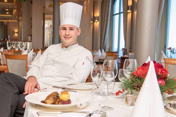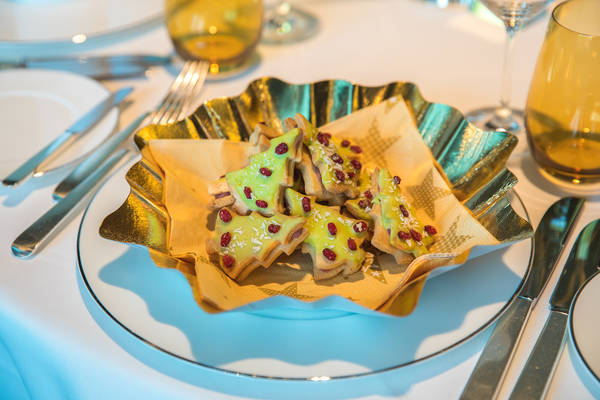 Von Bord haben uns zudem zwei besondere Rezepte erreicht. Tillman Fischer von der EUROPA schickt uns das Rezept für sein Festtags-Menü: „Kalbsbäckchen, Zimtjus, Salzmandeln, Maiscrème“. Und Sascha Krahe von der EUROPA 2 steuert seine Tannenbäumchen bei.