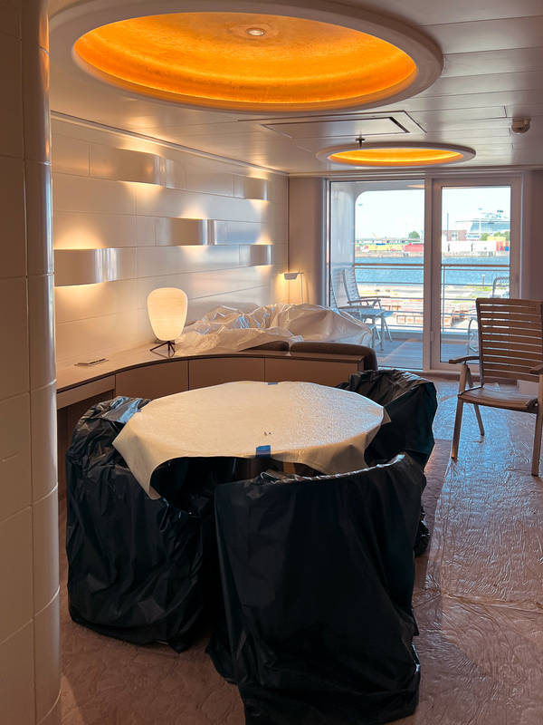 Es sind vor allem technische Arbeiten, die bei dieser Werftzeit im Fokus stehen. „Aber selbst wenn für unsere Gäste später kaum sichtbar ist, wie viel Aufwand wir betrieben haben, so gibt es ihnen doch ein gutes Gefühl, dass das Schiff auf dem aktuellsten Stand gehalten wird.“ Ulrich Voss leitet die technischen Arbeiten dieser Werftzeit der HANSEATIC inspiration. Er geht über das Pooldeck, auf dem noch Container stehen, Werkzeugkisten, Schweißmaschinen. Kaum vorstellbar, dass hier in wenigen Tagen wieder Gäste in gemütlichen Loungechairs liegen und die milde Frühlingsluft genießen.