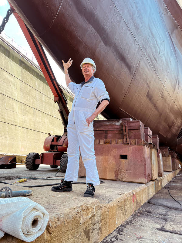 Alle fünf Jahre muss ein Schiff ins Trockendock. Ein Vertreter der Klassifikationsgesellschaft prüft die Betriebssicherheit und zertifiziert diese – die Klasse wird erneuert. Wie schätzt es der Kapitän ein, liegen die Arbeiten gut in der Zeit? Schon bald kommen die ersten Gäste an Bord, und die HANSEATIC inspiration bricht auf zu frühlingshaften Entdeckertagen in Ost- und Nordsee? Kapitän Ulf Wolter lässt den Blick über das im Trockendock liegende Schiff schweifen. „Anfänglich ist es ein großes Gewusel. Die ganzen Gewerke müssen sich finden. Aber wir sind on track.“ Der Kapitän lächelt. „Alles wird rechtzeitig fertig.“