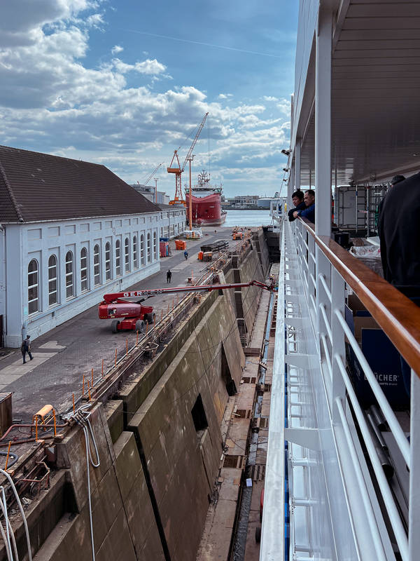 „Das Schiff erstrahlt in frischem Glanz. Für mich als Seemann ist es immer ein großer Moment, wenn das Dock wieder geflutet wird und das Schiff zurückkehrt in sein Element“, sagt Kapitän Ulf Wolter mit feierlicher Stimme. Heute legt die HANSEATIC inspiration nach seiner Schönheitskur ab und tritt die die nächste Reise an. „Darauf freuen wir uns schon alle.“