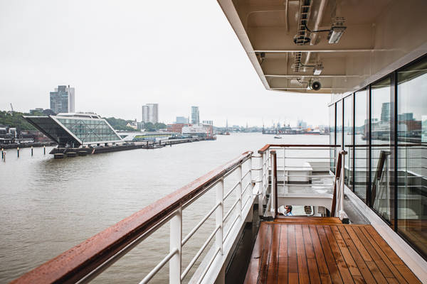 Trotz des nebeligen Wetters ist der 1. Juli für uns ein Freudentag: Am Morgen macht die HANSEATIC spirit in Hamburg fest. Hier stehen noch einige Vorbereitungen an, bevor sich das dritte Schiff unserer neuen Expeditionsklasse auf eine besondere Reise begibt – deren Höhepunkt eine spezielle Zeremonie sein wird: eine Hochseetaufe!