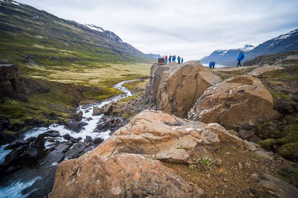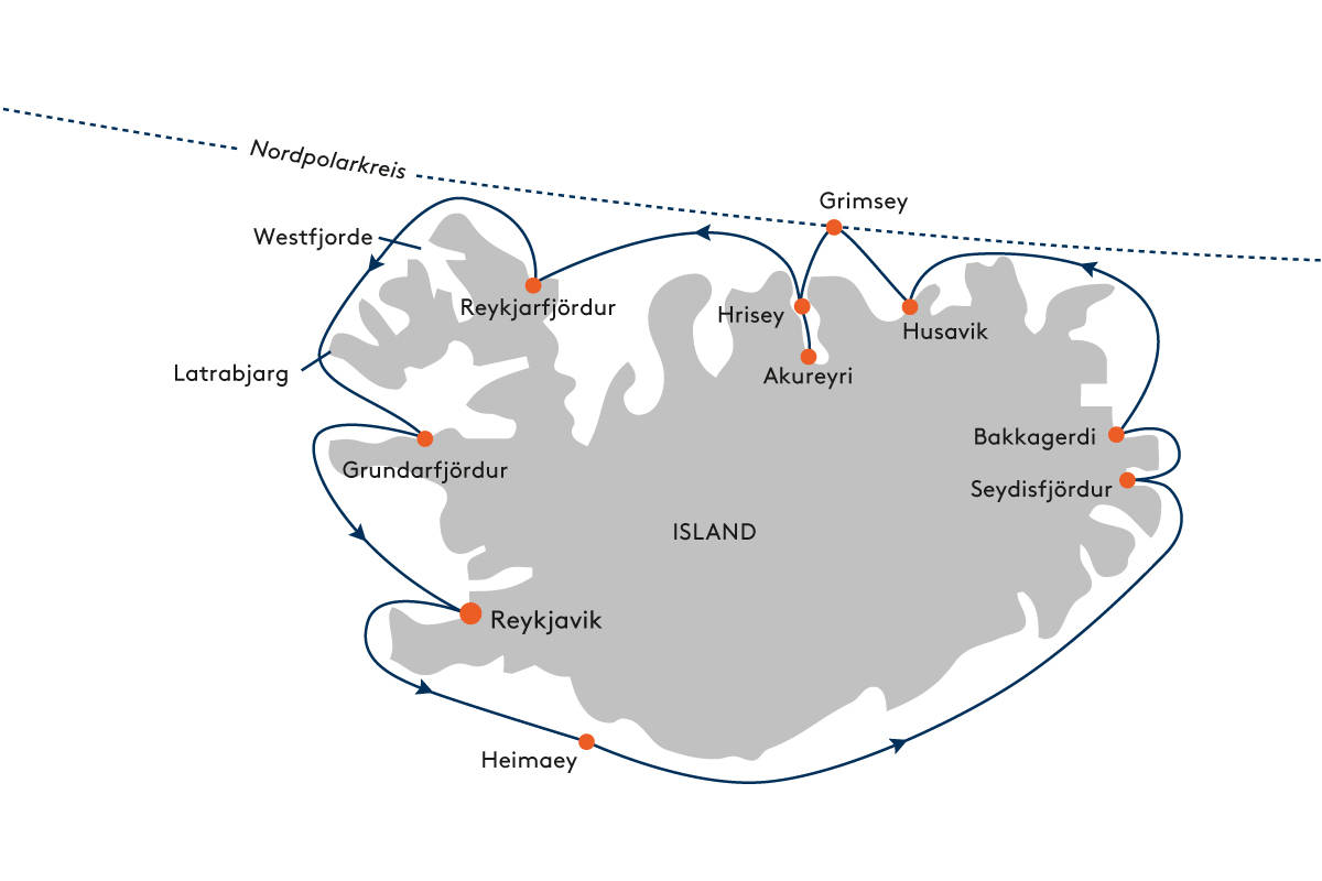 Um die Flugkünstler jedoch nicht bei der Partnerwahl oder beim Bau ihrer Flitterwochensuite zu stören, ist es zunächst notwendig, die Gäste einzuteilen. Hafnarholmi gilt als besonders schützenswert, und die AECO (Association of Arctic Expedition Cruise Operators) hat strikte Regeln für den Besuch eines solchen Gebietes festgelegt. Und während ein Teil unserer Gäste die Papageitaucher besucht, begeben sich die anderen zunächst auf eine interessante Küstenwanderung nach Bakkagerði. In der Einsamkeit der isländischen Nordostküste fühlt sich der kleine Fischerort mit seinen 77 Einwohnern fast wie eine „Stadt“ an. Das Dorf begeistert unsere Gäste mit seinem besonderen Licht, mit seiner Papageitaucher-Wand, es gibt eine niedliche Kirche, ein Restaurant und einen Laden. Die nächste echte Stadt, die die HANSEATIC inspiration anläuft, wird das rund 700 Kilometer entfernte Reykjavik sein, wo unsere Reise endet.