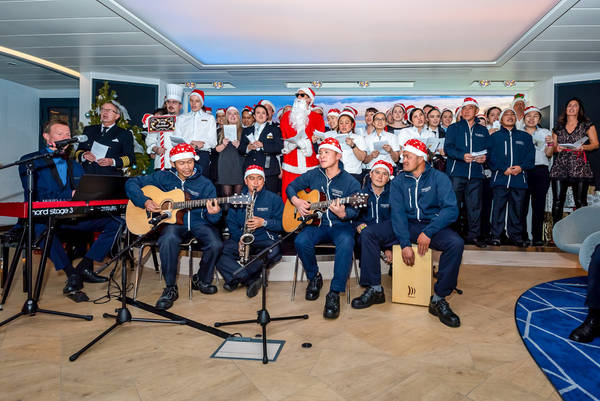 Der Weihnachtsmann kommt, der Crew Chor singt