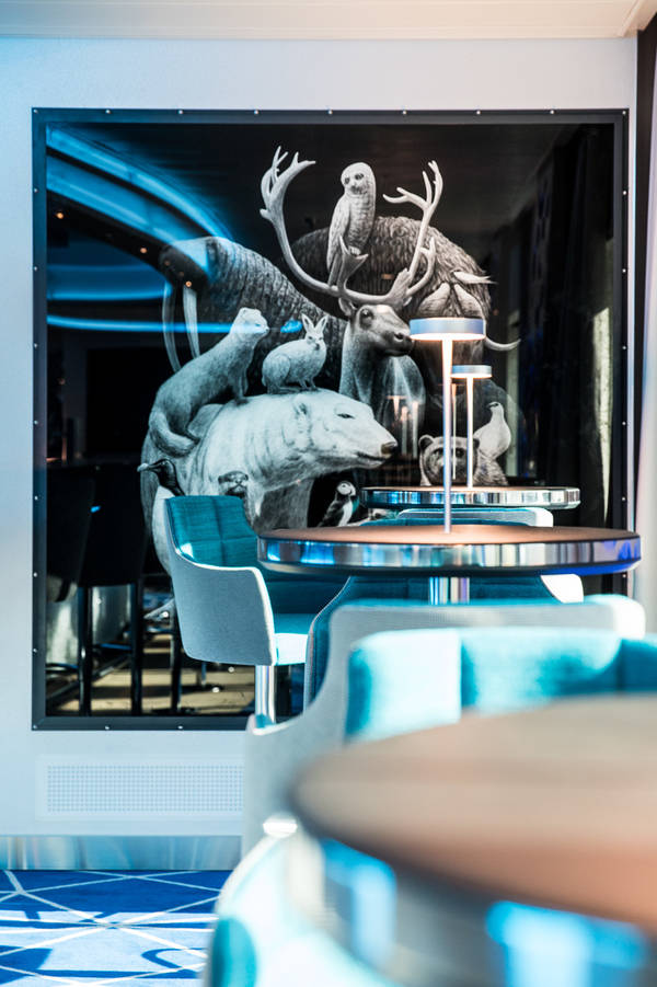 Das Design der Innenräume, das biodynamische Lichtkonzept, LED-Wände mit Naturaufnahmen – unter dem Motto „inspired by nature“ wird auf der HANSEATIC nature die Natur erlebbar. Auch die rund 200 Werke der internationalen Kunstsammlung folgen diesem Design-Ansatz. Und diese sprechen durchaus große Themen an.
