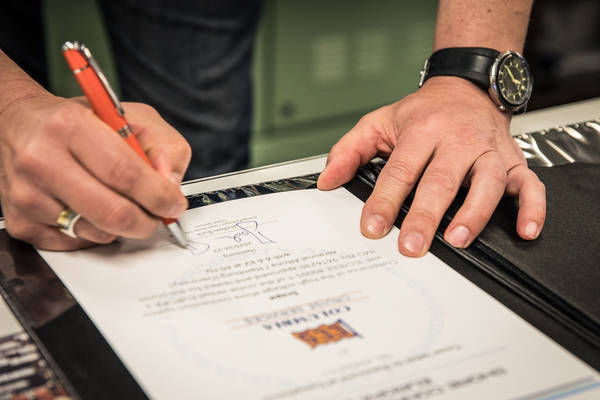 Die Unterschrift ist mehr als ein Symbol. „Wir hätten das Dokument auch per E-Mail schicken können“, sagt Jochen Buck von der Klassifikationsgesellschaft DNV GL, vielen eher bekannt unter dem früheren Namen Germanischer Lloyd. Doch weil es ein wichtiger Schritt ist, auf den an vielen Stellen lange hingearbeitet wurde, passt der kleine feierliche Rahmen. Kapitän Christian van Zwamen und Chief Hagen Franke stehen im Kontrollraum der Maschine der EUROPA 2, ganz offensichtlich zufrieden, dass nun besiegelt wurde, was eine Reihe recht aufwändiger Tests erforderte.