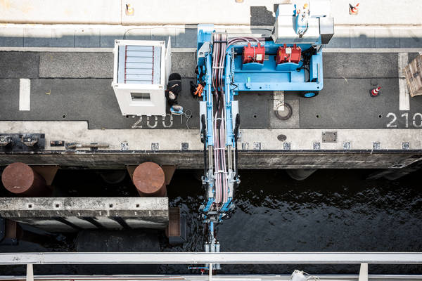 Wie die Schiffe unserer neuen Expeditionsklasse verfügt auch die 2013 in Dienst gestellte EUROPA 2 über einen Landstromanschluss. Doch kann man das Schiff nicht einfach an die Steckdose anschließen und die Maschinen abschalten. Schon allein „Steckdose“ ist eine etwas irreführende Bezeichnung: Mehrere armdicke Kabel werden von einem hydraulischen Greifarm, der den Tidenhub im Hamburger Hafen ausgleicht, durch eine Luke auf der Steuerbordseite in das Schiff geführt. Der Raum, in dem die Verbindung hergestellt wird, darf nicht mehr betreten werden sobald der Strom fließt.