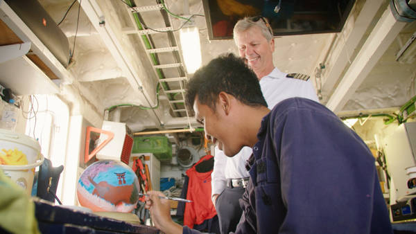 Was fasziniert ihn so an der Expedition? Kein Tag ist wie der andere. Mal Eismeer, mal Tropen, mal offenes Wasser. Und doch hat der Kapitän seine Rituale. „Ich nehme mir Momente, in denen ich zur Ruhe komme. Dann trinke meinen Schwarztee – an der Steuerbordseite, aus meiner Lieblingstasse. Die begleitet mich schon seit vielen Jahren, hat Stürme überstanden. Wie durch ein Wunder ist der Henkel noch dran.“ Wenn sich jemand seine Tasse nimmt, so scherzt Wolter, „droht die Höchststrafe“.
