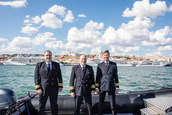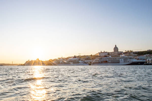 Das Schiff fährt direkt auf die an der Pier liegende EUROPA zu und zieht dann langsam vorbei. Ganz langsam. Die Typhone ertönen, Gäste und Crew-Mitglieder winken. Die besondere Atmosphäre dieses Aufeinandertreffens zwischen unserem Luxusschiff und unserem Expedtionsneubau HANSEATIC inspiration überträgt sich auf alle. Und das ist erst der Auftakt. Gegen Mittag stößt noch die EUROPA 2 dazu. Vor der zauberhaften Kulisse Lissabons feiern wir einen historischen Moment in der Geschichte von Hapag-Lloyd Cruises – das erste Zusammentreffen dreier Schiffe.