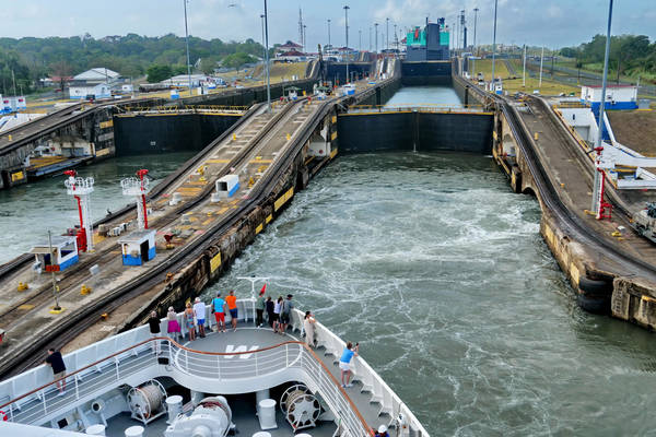 Zu den nautischen Höhepunkten einer jeden Südamerika-Reise zählt der Panamakanal. Die Schleusenpassage, die Fahrt durch den Gaillard Cut und den Gatun-See erfordern höchste Aufmerksamkeit. Genau das Richtige für Kapitän Rößler: „Für mich ist der Kanal auch nach 86 Passagen immer wieder faszinierend. Ich freue mich jedes Mal!“