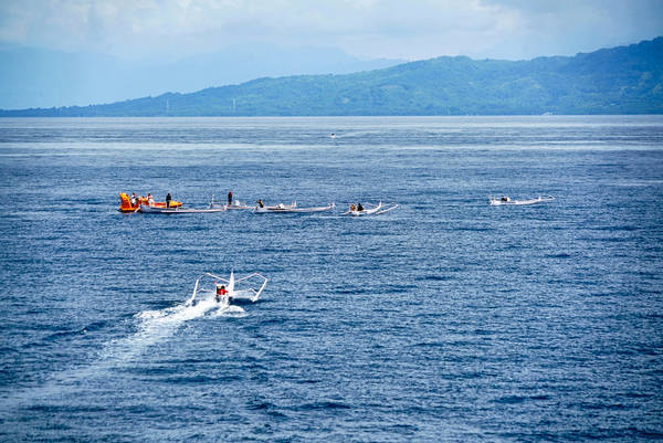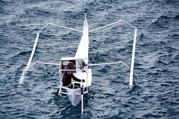 Beim Überqueren des Äquators, den eine gedachte Linie zwischen zwei Zodiacs symbolisiert, werden wir von Fischern in Auslegerkanus begrüßt. Sie zeigen uns ihren Fang. Ein Fischer hält einen stattlichen Marlin empor. Es folgt eine Durchsage von Kapitän Dag Dvergastein, der Hotelmanager möge auf der Brücke anrufen. Etwas später informiert uns der Kapitän, wir sollten doch von Backbord hinausschauen, man kauft gerade unser Lunch. Der Fisch wird an Bord gebracht und als Sashimi serviert. Frischer und leckerer geht es kaum!