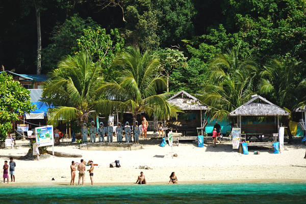 Später gleiten wir mit einem Auslegerkanu nach Pandan Island in der schönen Honda-Bucht. Heute ist Relaxen angesagt. Bei schönstem Wetter genießen wir den Tag, schnorcheln, paddeln oder spazieren an diesem Traumstrand entlang. Im Wasser sehen wir große Seesterne.