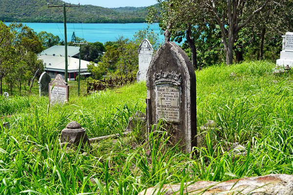 Das erklärt, warum wir auf dem Weg zum historischen Friedhof nur so wenigen Menschen begegnen. Ziel unseres Ausflugs ist das Japanese Pearl Divers Memorial, das an die vielen japanischen Perlentaucher erinnert, die vor fast 150 Jahren hier nach den Schätzen des Meeres gesucht haben. Unglaubliche Wassertiefen hat man damals mit technisch wenig ausgereiften Hilfsmitteln erreicht. Viele Taucher sind an der Dekompressionskrankheit gestorben. Ihnen wird an diesem Ort gedacht. Die Perlen-, bzw. Perlmuttindustrie ist in diesem Teil Australiens immer noch stark.