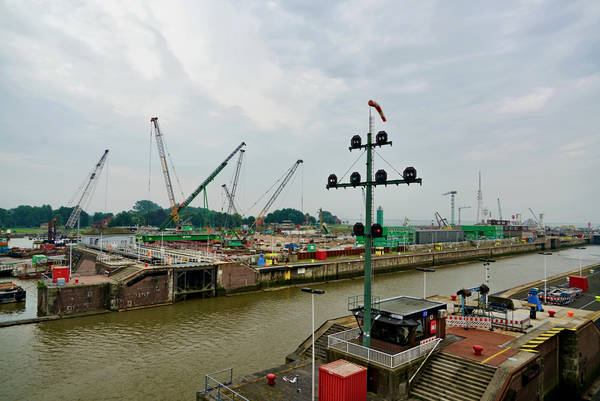 Vom Oberdeck haben wir später eine gute Sicht auf die Baustelle der neuen Schleusenanlage.