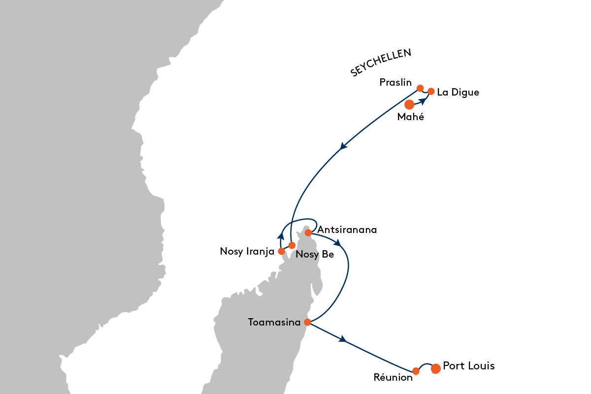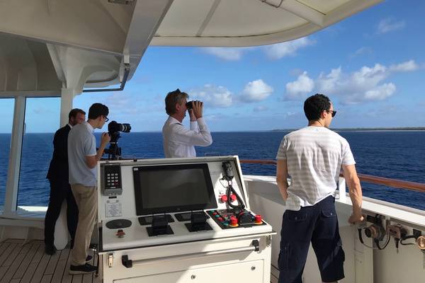 Am frühen Morgen passiert die EUROPA 2 die Agaléga Islands. Die Inseln sind von einem Saumriff umgeben und von Kokospalmen dicht begrünt. Fliegende Fische und hübsche Feenseeschwalben begleiten das Schiff und schwirren immer wieder hinauf bis zur Nock. Ich darf die Passage auf der Brücke miterleben. Die beiden Inseln haben insgesamt etwa 27 Quadratkilometer und wurden im 19. Jahrhundert von Mauritius aus besiedelt. Solche Informationen gibt Lektor Tilman Giezendorf. Kapitän Ulf Wolter steuert St. James Harbour an, da gibt es einen kleinen Anleger.