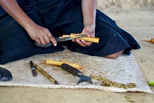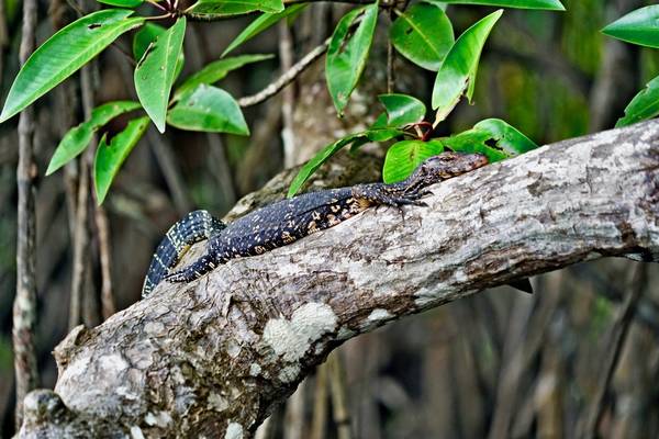 Wasser hat eine religiöse Bedeutung auf Sri Lanka. Es reinigt, nährt, versorgt. Es ist ein besonderer Lebensraum. Das zeigt sich auch bei unserer Bootstour auf dem Madu Ganga. Wir sehen Bindenwarane, die wie kleine Krokodile aussehen und auf Bäumen sitzen. Am Ufer stehen Mohrenscharben, große Vögel aus der Familie der Kormorane, die sich am liebsten in der Nähe der Garnelenreusen aufhalten. Auf einer kleinen Insel im Fluss besuchen wir ein traditionelles Haus, man zeigt uns wie Zimt gewonnen wird, und wie man die Blätter der Kokospalmen verwebt. Vom Boot aus beobachten wir durch unsere Ferngläser ein Krokodil. Bis es abtaucht…