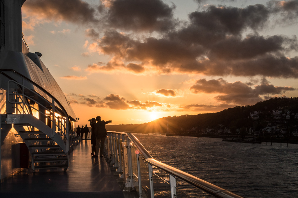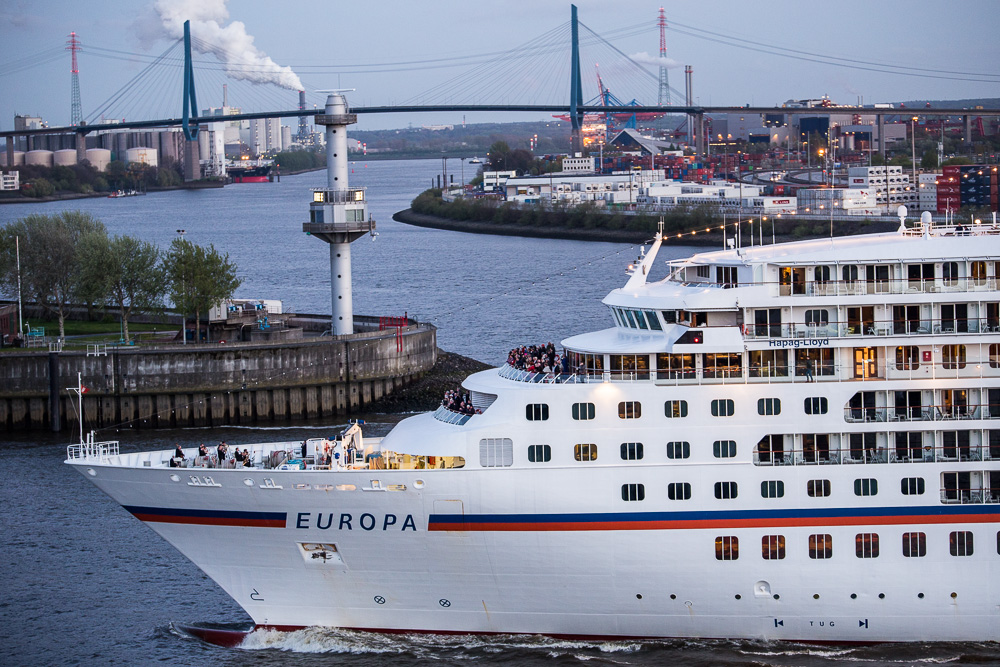 Transatlantik mit Stil: Dass diese Kreuzfahrt mehr war als eine klassische Transatlantik-Reise, das erkennen auch die Passanten, die an einem kühlen, aber sonnigen Mai-Abend an der Elbe stehen und zusehen, wie die EUROPA langsam näher kommt. Sie passiert ein riesiges Hapag-Lloyd Container-Schiff und dann die Zufahrt zum Köhlbrand-Hafen, über den sich die berühmte Brücke erhebt. Und jetzt hören die Menschen, die hier stehen, die Musik. Sie weht herüber, der Wind ist angefüllt mit Big Band-Klängen. Und nun sieht man auch die Musiker – auf dem Vorschiff der EUROPA. Die Musik, ein gold-glänzender Abend, blaue Stunde über der Elbphilharmonie. Kaum jemand, der sich jetzt nicht an Bord des Schiffes sehnt…
