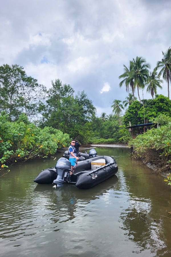 Nachdem wir die Nacht vor Bahia Solano verbracht haben, verholt die HANSEATIC inspiration nach Ensenada Huina. Hier ist bisher noch kein Kreuzfahrtschiff vor uns gewesen. Der Anker fällt um 8 Uhr auf 31 Meter Wassertiefe. Um unsere Gäste für den Regenwald-Walk an Land zu bringen, legen die Zodiacs eine Strecke von fast 3,5 Seemeilen zurück und fahren dabei ein Stück den Megana Fluss hinauf. Ein tolles Erlebnis, wie eine Flussfahrt auf dem Amazonas.