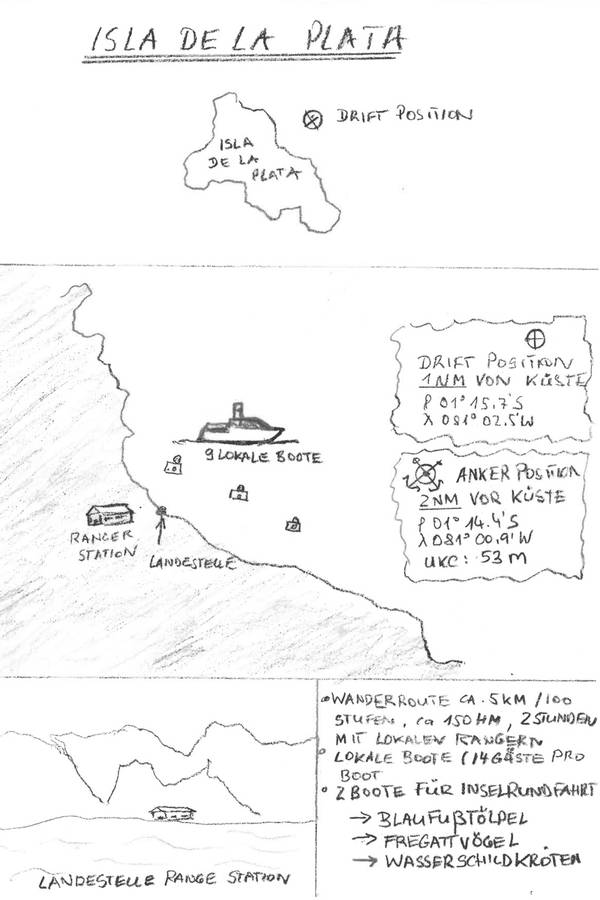 Klein Galapagos wird die rund 25 Kilometer vor dem Festland gelegene Isla de la Plata auch genannt. Bevor wir unsere Gäste an Land bringen können, kommen die Behörden per Boot an Bord. Erst nach Freigabe werden uns zwei Optionen angeboten: eine Drift- oder eine Ankerposition.