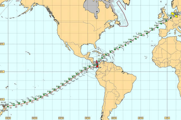 - 11.859 Seemeilen (21.962 Kilometer) – Positionierungsfahrt von Auckland nach Rostock