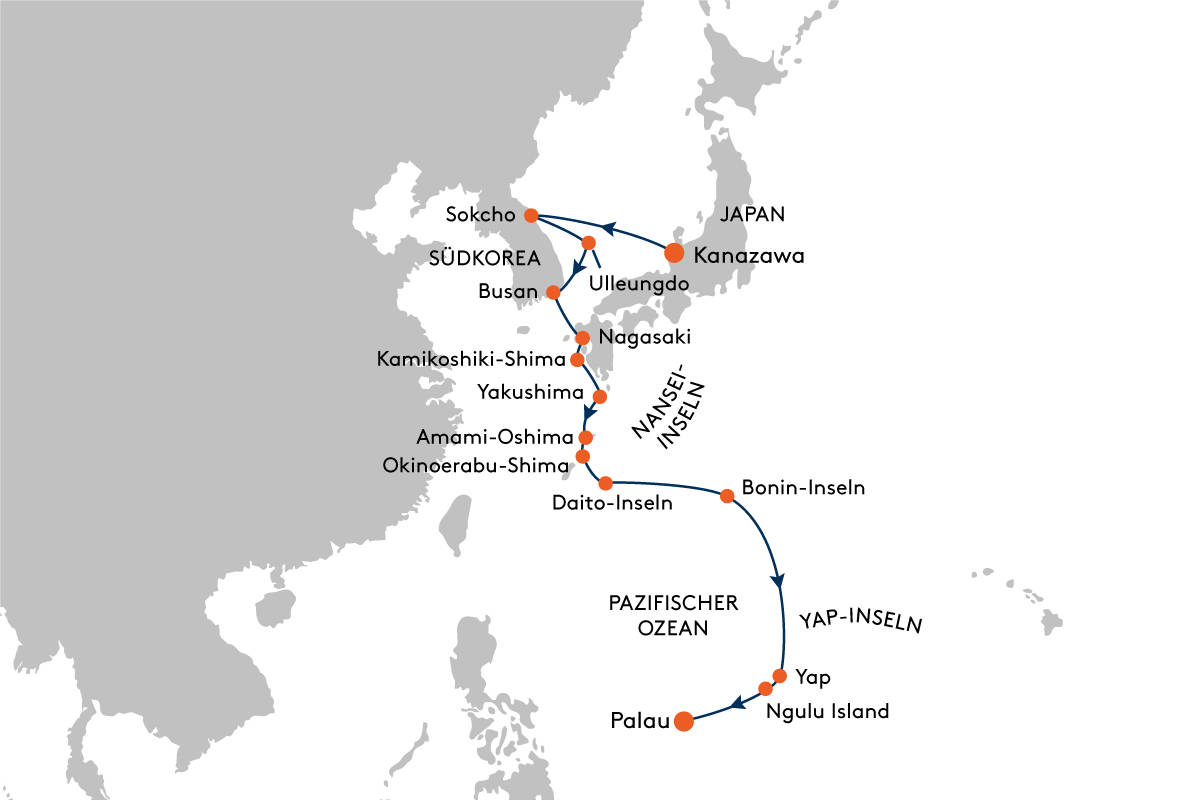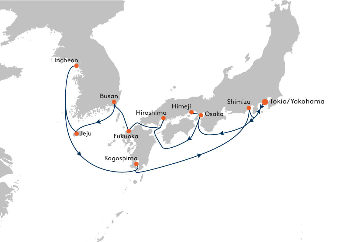 Zur Zeit der Kirschblüte zeigt sich Japan von seiner zauberhaften Seite. Genau dann begibt sich die EUROPA 2 auf ihre Reise von Tokio nach Yokohama. „Japan intensiv erleben“: Alte Kaiserstädte und lebendiges Nachtleben. Trends und Traditionen. Kulinarische Höhepunkte in Osaka, heiße Quellen in Kagoshima. Eine Reise, die viele Highlights der japanischen Gegenwartskultur verbindet.
