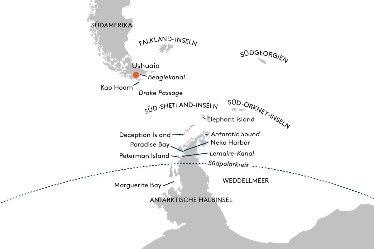 Majestätische Gletscher, hunderttausende Pinguine und magische Lichtstimmungen – die Antarktis ist einer der ungewöhnlichsten Lebensräume der Erde. Unsere hochmodernen Expeditionsschiffe HANSEATIC nature, HANSEATIC inspiration und HANSEATIC spirit erkunden diesen eindrücklichen, menschenleeren Kontinent. Kapitän und Crew passen die Route täglich den wechselnden Wetter- und Eisbedingungen an. Und dann steigen die Gäste nach und nach in die Zodiacs, um diese grandiosen Landschaften zu erkunden – Wow-Momente, in denen alle zu Entdeckern werden.