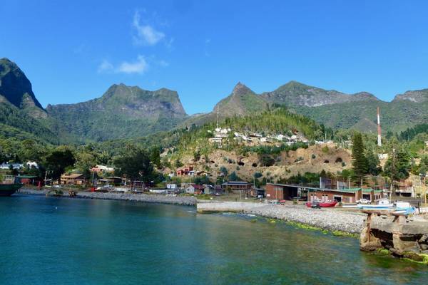 Die Robinson Crusoe-Insel empfängt uns mit rötlichen Farben in einem atemberaubenden Sonnenaufgang. Robinson Crusoe ist dauerhaft bewohnt und zusätzlich noch per Flugzeug erreichbar. Die Wellen sind immer noch stark und unstetig, allerdings liegen wir im Norden der Insel in einer etwas geschützteren Bucht und können an einer Pier an Land gehen. Unsere Wanderer machen sich sogleich auf den Weg zum Mirador Selkirk, einem Pass über den man von der Nord- auf die Südseite der Insel gelangt und von dem man einen wunderschönen Ausblick in beide Richtungen genießen kann.
