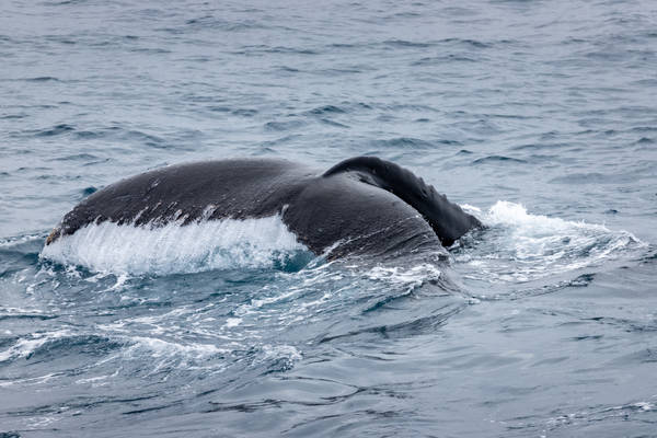 Hier sind Fluken – die Schwanzflossen – zu sehen, dort wird mit dem Flippern – so heißen die Brustflossen der Buckelwale – aufs Wasser geschlagen. Wir sehen große und kleinere Tiere, einzelne oder in Gruppen. Was für ein Spektakel! Niemanden an Bord hält es in den Innenbereichen. Auf den Decks, Balkonen und dem "nature Walk" stehen die Gäste in ihren blauen Parkas mit glücklichen Gesichtern. Aber auch wir, die Crew-Mitglieder, sind voller freudiger Aufregung. Einmal mehr hat uns das Expeditions-Fieber gepackt.