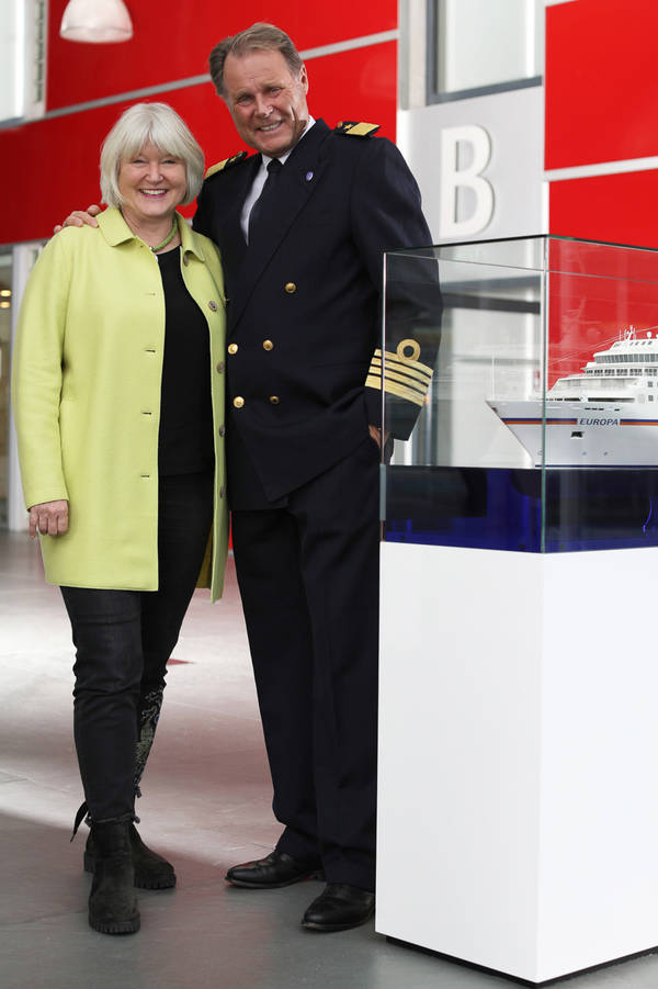 „Good Morning everybody, my name is Dag Dvergastein and I am from Norway“, sagt der große Mann in der dunkelblauen Uniform, der ganz lässig an der Vitrine lehnt. Hinter poliertem Glas steht ein Modell der EUROPA. „I am the new captain of the EUROPA.“ So wie er das sagt, herzlich und doch souverän, mit einem besonderen Timbre, freut man sich schon darauf, seine Stimme bald über die Bordlautsprecher des Schiffs zu hören. Erst recht, da er jetzt auf Deutsch hinzufügt: „Und ich freue mich auf diese neue Herausforderung.“