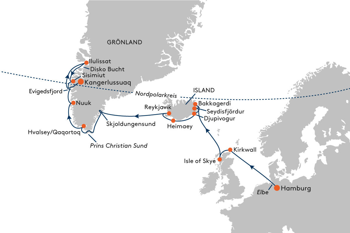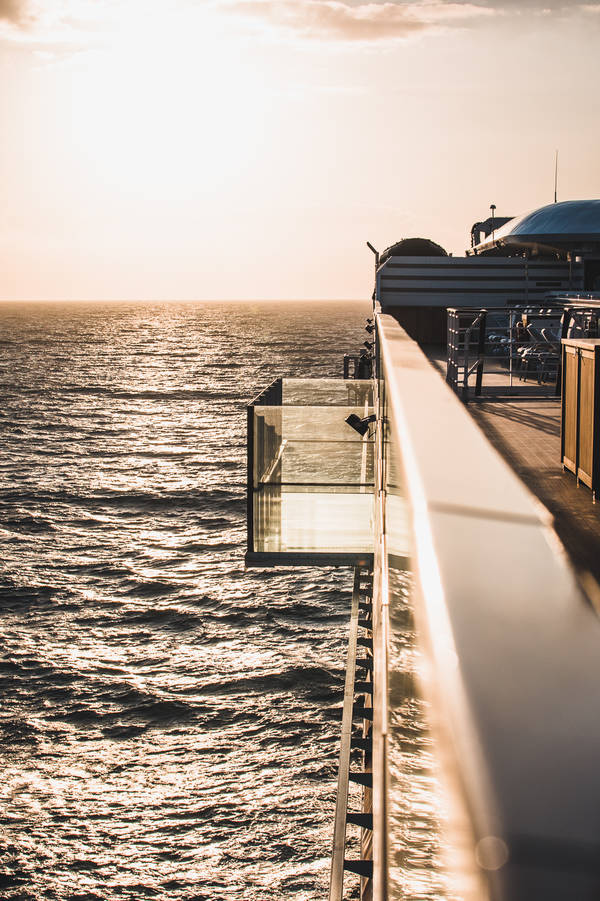 „Ich freue mich, dass es wieder los geht“, sagt Nadine Armbrust, General Expedition Manager der HANSEATIC nature. Sie holt viele Gäste im Terminal des Cruise Center Altona ab und begleitet sie an Bord. Und selbst der Umstand, dass inzwischen der Wind böig aufgefrischt hat und dunkle Wolken über den Hamburger Hafen fliegen, trübt die Begeisterung nicht. „Wir sind Expedition – und ganz anderes gewöhnt.“ Auch das Wetter, so viel sei vorweggenommen, wird sich im Laufe des Tages noch von ganz anderer Seite zeigen. Wenn über der Nordsee die Sonne rauskommt, und wenn sie später hinter Helgoland in einem famosen Spektakel versinkt. Von den ausfahrbaren Balkonen, vom Pool- und Observation-Deck richten sich unzählige Smartphones gen Nordwesten aus.