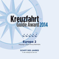 Im Rahmen des Kreuzfahrt Kongresses 2014, dem jährlichen Branchentreffs am 11. November 2014, zeichnete der Bellevue and More Verlag die besten Kreuzfahrtschiffe mit dem Kreuzfahrt Guide Award 2014 aus. Die EUROPA 2 wurde gleich in zwei Kategorien prämiert - Das 5-Sterne-Plus Schiff* erhielt die Auszeichnungen als "bestes Schiff" für die Bereiche "Service" und "Gastronomie".
